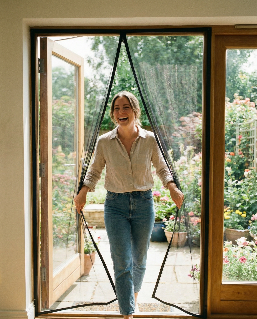 So bleibt die Tür offen, während Mücken, Fliegen und andere Insekten draußen bleiben.